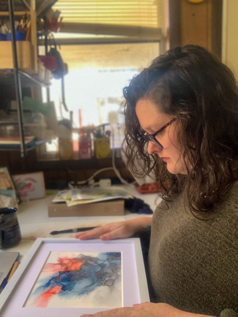 I am a self-taught artist with a deep love for vibrant, warm and color-soaked abstracts. I dabble in all kinds of mediums, but I am most drawn to alcohol inks. They are super playful and force me to let go of control and intuitively move with the fluid ink. It’s the most frustrating and wonderful tug-of-war.