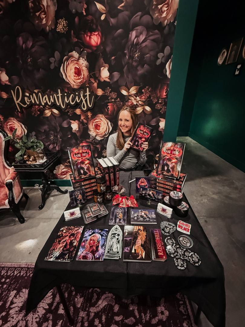My stories center on couples navigating worlds fraught with political intrigue and occult themes, often embarking on challenging journeys of acceptance and grief. I’m also a Halloween enthusiast to my core, and I’ve joyfully embraced my spooky brand, both in my books and beyond.
