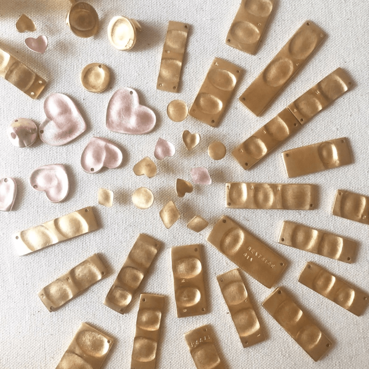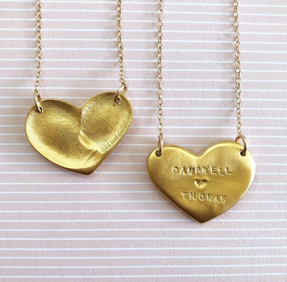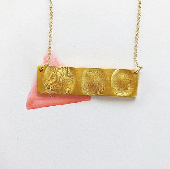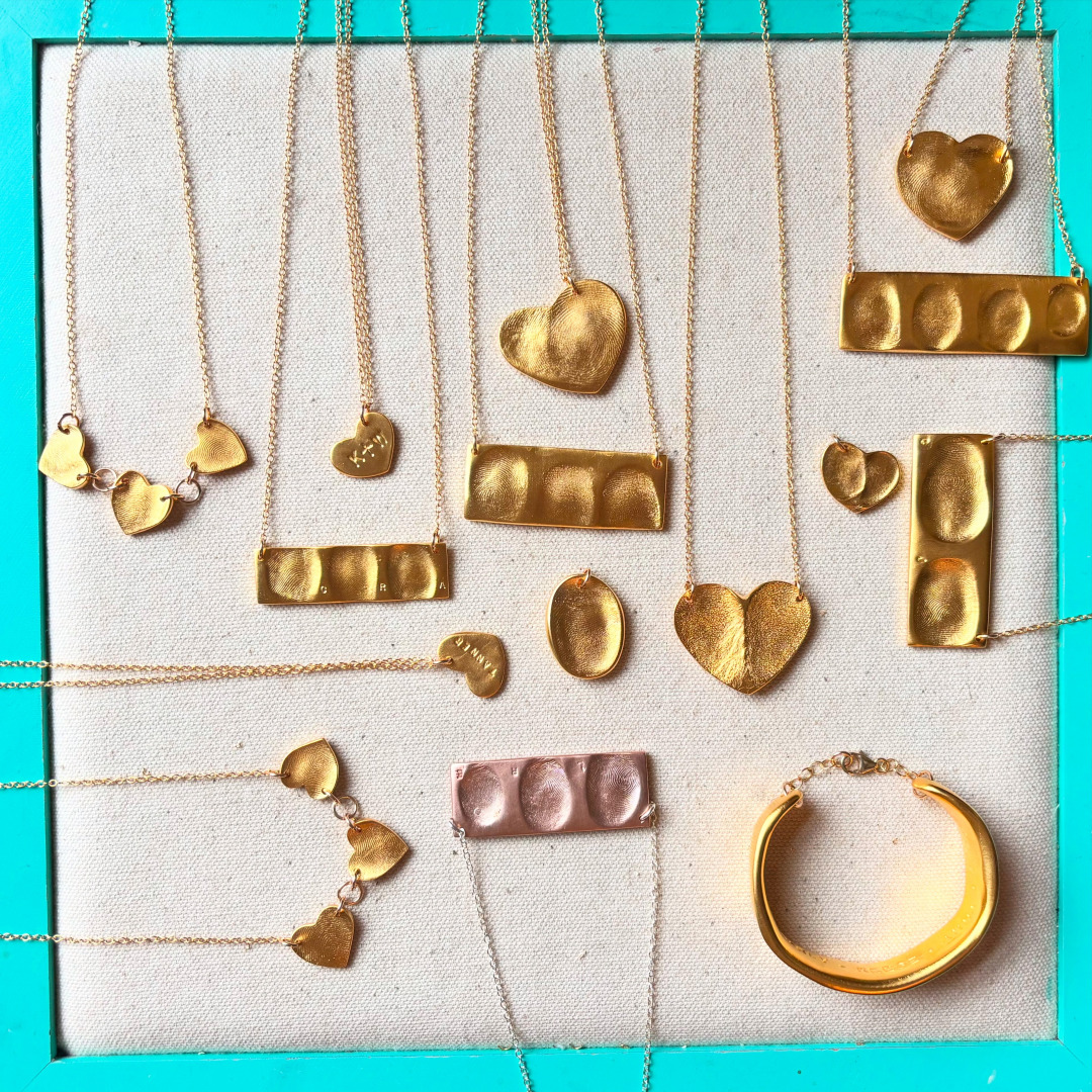 When I created this product I was teaching an ornament making workshop for kids. I noticed I was buffing off there tiny prints that showed up in their metal creations. I thought I bet parents would want these. A year or so later I had by first child and I did want my baby’s newborn handprint and to wear his tiny prints around my neck. It was a very organic process how I expanded this product line and business. As I expanded my family and more of my friends had kids, the word spread and people bought my products. Their friends see the jewelry and would want one and it snowballed into a sustainable business. I love the collaboration of their prints and my creations. I love the connectivity people feel to my line of jewelry. Occasionally I will get impressions of people’s last touch. When I receive messages from people that tell me how much their prints of love keepsakes mean to them I know I am doing what I am meant to do.