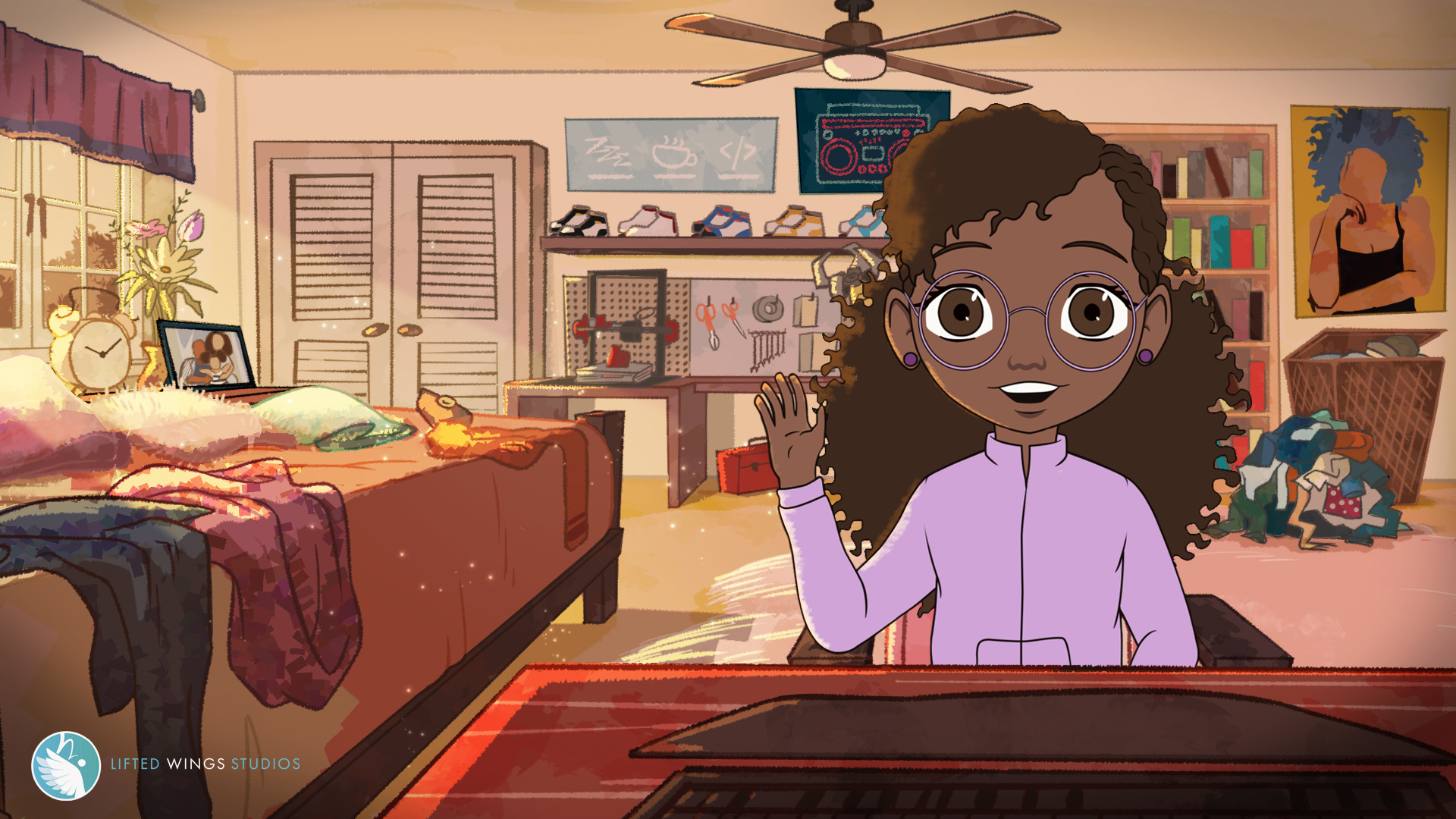 Something that has set me apart from most people is that I was blessed to know from a very young age what I wanted to be. I declared to both my mother and third grade teacher “I’m going to be an artist!” So, I have had many years to focus on this target. I found animation to be the best way for me to have a career as an artist. I started interning at a couple of studios and then I got my first career-related job as an in-between animator at Bento Box Entertainment. From there, I began working as a freelance animator at many different studios. While animating studio work, I started gaining my own clients that were referred to me by some of my colleagues. My client list began to grow, and I decided to become an independent contractor. As my projects became larger and there was a need for me to build a team to finish these projects, creating an LLC, Lifted Wings Studios, was the natural next step. There have been so many challenges, but my faith keeps me grounded. Prayer, meditation, and fellowship has always helped me not to put my worth and identity into my career. This has been a good way to stay levelheaded through the ebbs and flows of the animation industry. During this journey, I found my niche. I had the opportunity to work on an interactive anti-bullying animation exhibit for the Unity Center at the California State Museum. I am extremely proud of this project it transitioned my work from being solely for entertainment to work with a message for good.