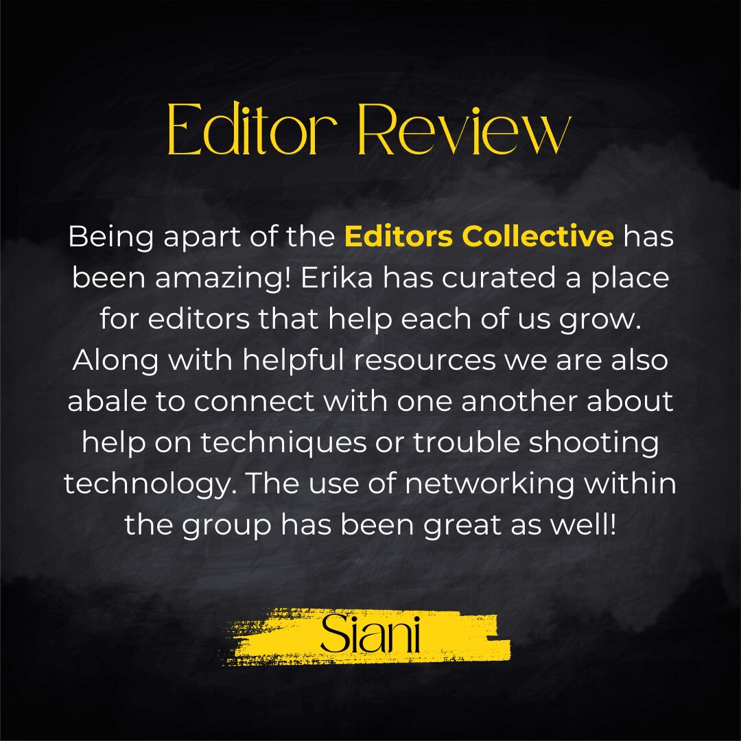 Special shoutout to the Editors Collective community! You all took a chance to join and you all represent for all post production individuals who don’t get recognized for their hard work to the craft. I appreciate all 54 Editors in this community as we continue to shed light to post production.