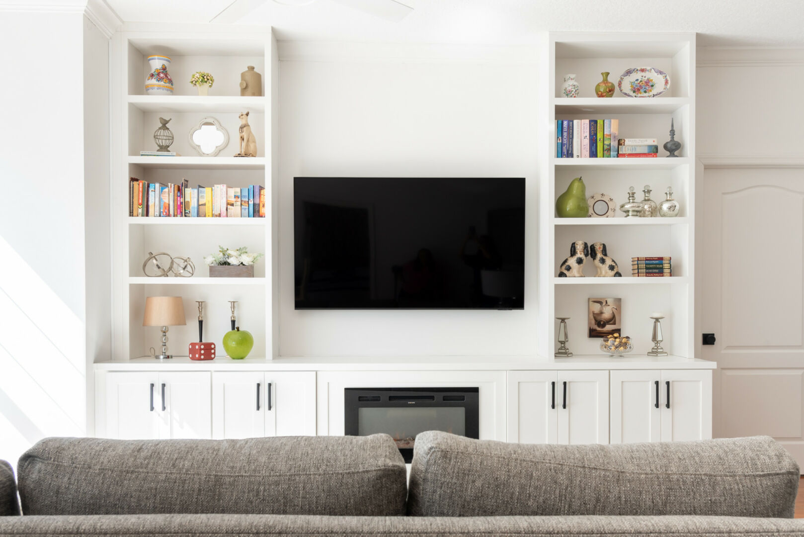 Our business specializes in custom cabinets. We create everything from bathroom vanities, mudrooms, built-in units, fireplace walls, TV walls, home office units, and kitchen cabinets to storage and laundry room cabinets. We also offer a small category of “unique wood projects,” such as custom game tables or nightstands. We work with our clients from A to Z, starting with measurements and exploring their needs, references, and personal taste. Then, we design their unique cabinets, create them, and install everything. It’s a very personalized and custom process.