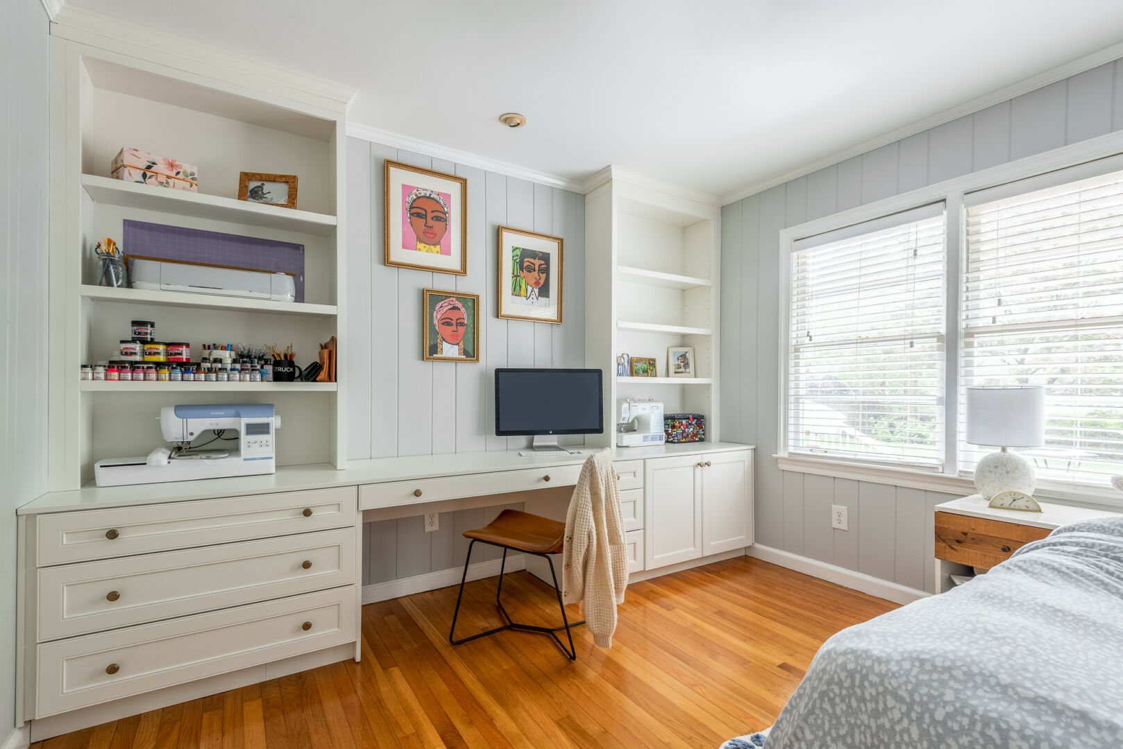 Our business specializes in custom cabinets. We create everything from bathroom vanities, mudrooms, built-in units, fireplace walls, TV walls, home office units, and kitchen cabinets to storage and laundry room cabinets. We also offer a small category of “unique wood projects,” such as custom game tables or nightstands. We work with our clients from A to Z, starting with measurements and exploring their needs, references, and personal taste. Then, we design their unique cabinets, create them, and install everything. It’s a very personalized and custom process.