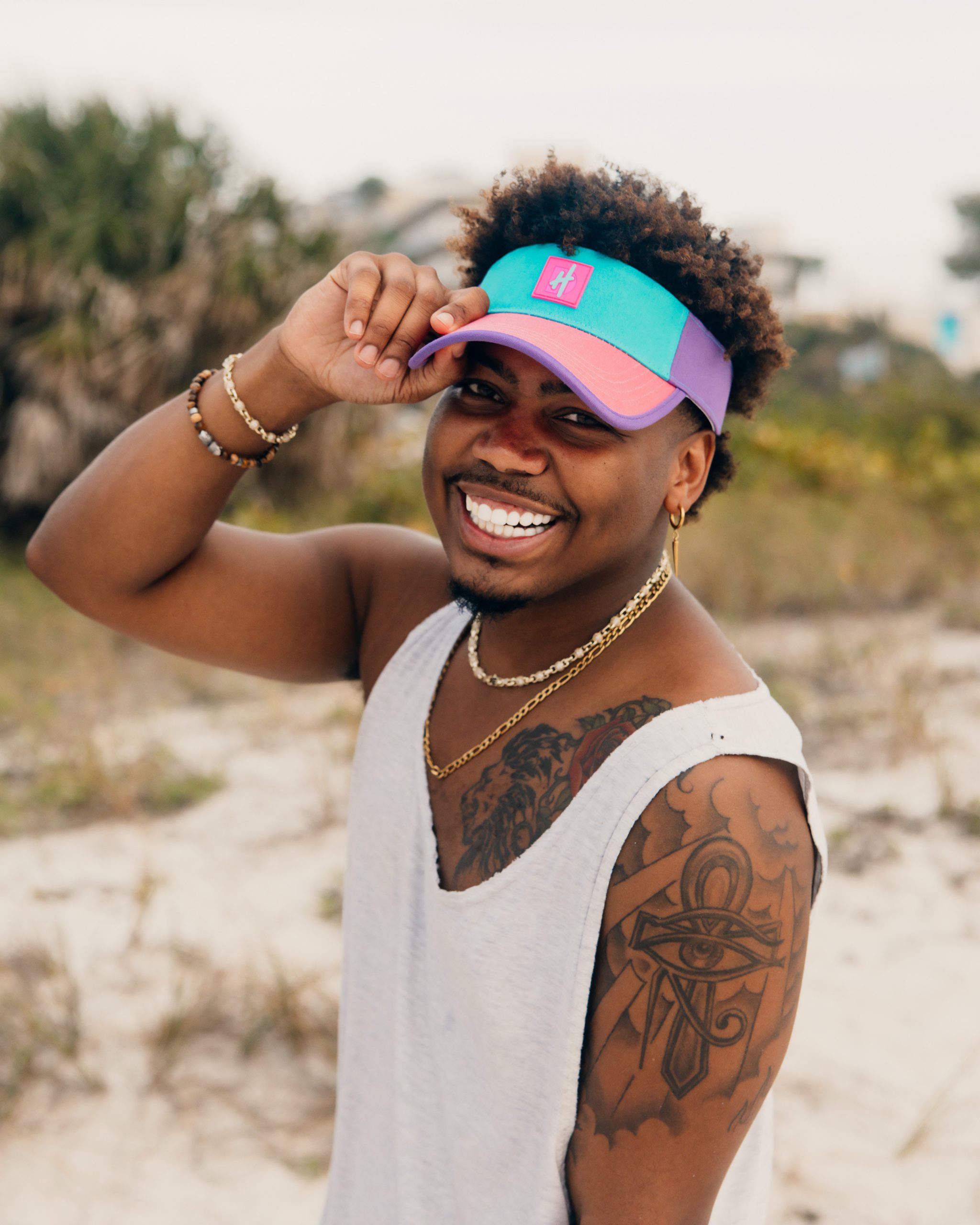 HATDADDY started as a fun idea while I was on a beach trip a few years ago. Honestly, it all started because I had been growing my hair into a mullet, and I wanted to rock my mullet with a visor on the beach. When I went online to try and find a visor with some personality, the selection was pretty boring. So I figured I’d make my own!