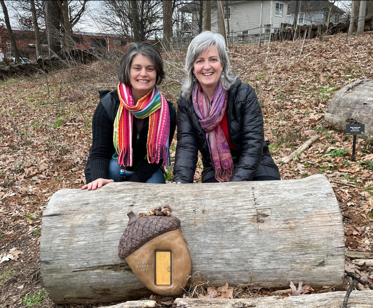 Fernbank Museum has many outdoor walking trails, a canopy walk, and outdoor exhibitions. They have a program called Fernbank after dark. The second Friday of every month, they present a variety of unique after hours experiences for adults. It includes full bar, food, music, and science demonstrations… we will be eating dinner here! The tiny door is located outside on Fernbank property! You have to follow the path through the wild woods and you’ll find a tiny door held to a stone wall by two dinosaur claws!!