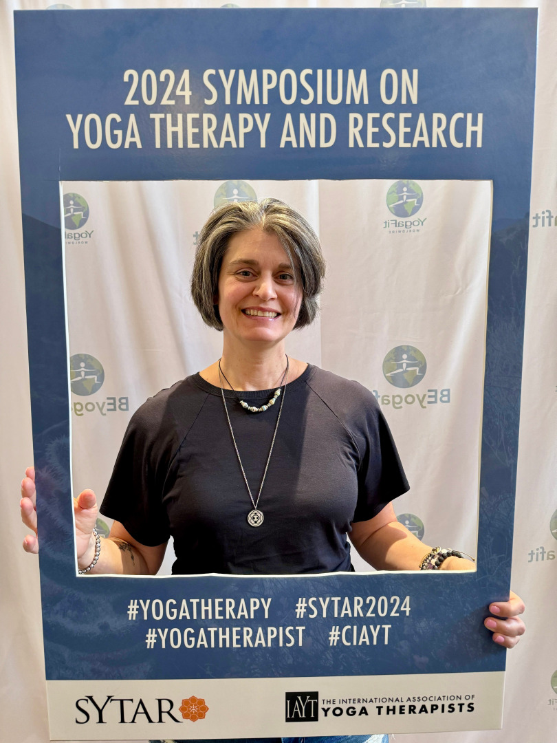 Yoga Therapy is not well-known and that is a challenge. So I try to share my thoughts, experiences and knowledge with anyone who will listen. We use the tools of yoga to bring balance to the layers of the body. This includes, Asana (movement), Pranayama (breath), Philosophy (Intellect), Spiritual Connectedness (Intuition), and Ananda (Ability to experience joy). To the whole self.