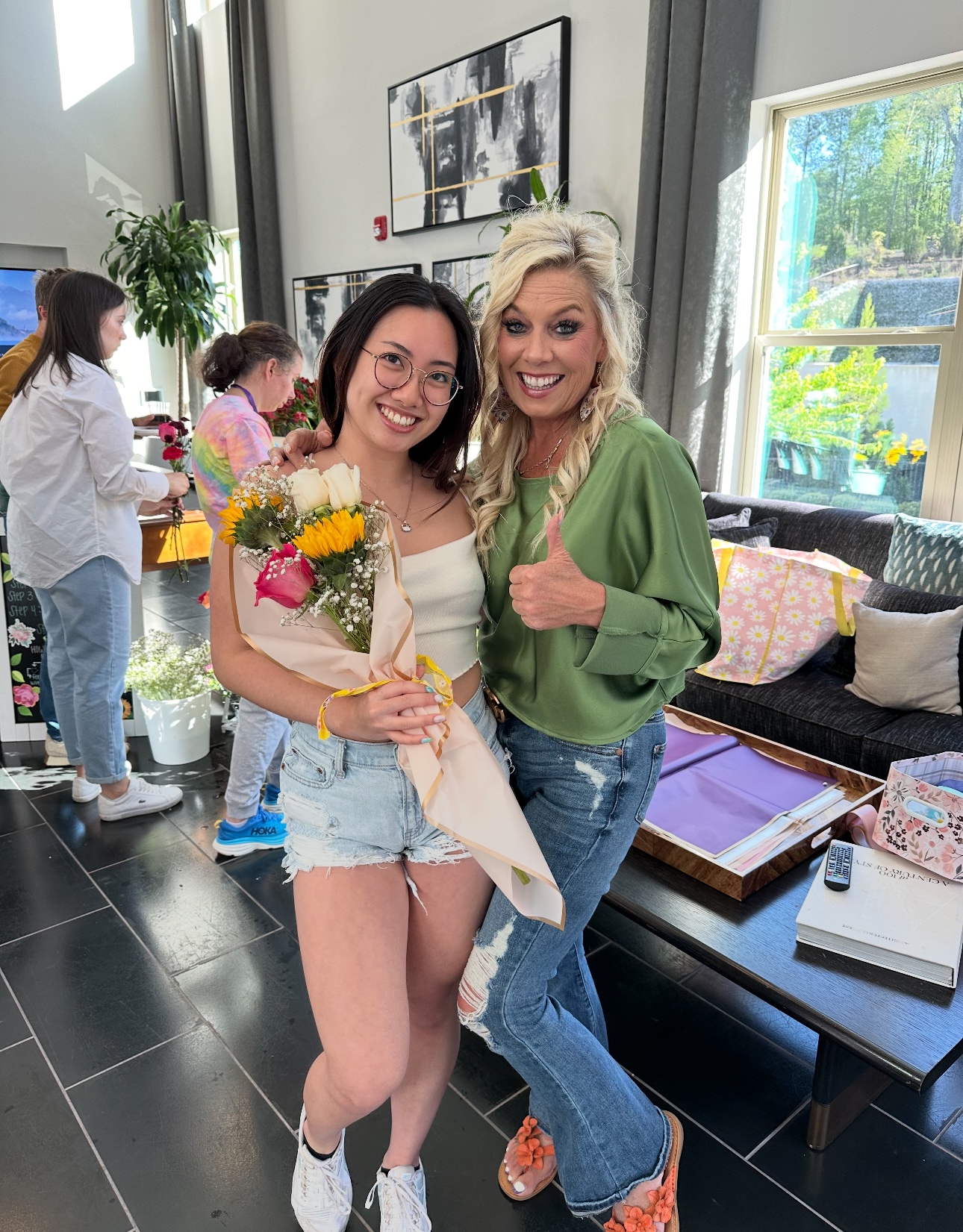 I was born in Atlanta, Georgia. Eventually at age 12, I moved to Lake Lanier in the little town of the beautiful Flowery Branch, Georgia! I grew up living on a houseboat (this was way back when no one lived on houseboats!) I was known as the “boat” girl in high school and little did I know at the time all the amazing memories I would make over the years on that Lake with friends and to this day I have NEVER moved away from Flowery Branch. I went to dental hygiene school right out of high school and did that a few year full time. Eventually realized that I loved education my patients on oral hygiene and already had to take so many science classes so I went back to school and got my Biology degree to teach school so I could have the honor of educating our future generations! I did both teaching school and dental hygiene together for right at 30 years. I would teach school full time and then every school break, summers, or holidays we were out of school I would do “fill ins” at various dental offices. I truly had the best of both worlds! I furthered my education over the years and after recieving my bachelors degree, I went on to get my Masters Degree, and finally a Specialist Degree in leadership. I eventually opened a photography business, (26 years ago), a CPR training business (24 years ago), and then when I married we opened an ambulance company that eventually became one of the biggest in the Southeast! I still have the photography business and CPR training business today. Once I retired a few years ago from education I knew I was too young to fully retire because I had started so young so I began to brainstorm something that would bring me joy as well as others. I needed that in my life after a divorce and really wanted to focus on spreading joy and happiness for myself and others too! Now, The Crazy Daisy mobile “build your own bouquet” flower truck was born! Not only was it a vision for me, I had a dream! I wanted this truck to be my most favorite color (purple) and to represent total happiness for anyone who came in contact with it to feel a sense of happiness and leave with a smile on their face! I added colorful flowers all in the design of the truck and even sparkle flakes in the wrap I had done on this adorable little matchbox size cute little truck! When clients build their unique one of a kind bouquet the last words I always say to them is “would you like a glitter on your bouquet”? So many love that “extra” idea and then for some it might just not be their thing. No matter what, it is always my wish thatb all of my customers leave with a smile on their face and happiness in their hearts! I never dreamed how many events I would end up doing my first year in business and all by word of mouth from my community. So much FUN!