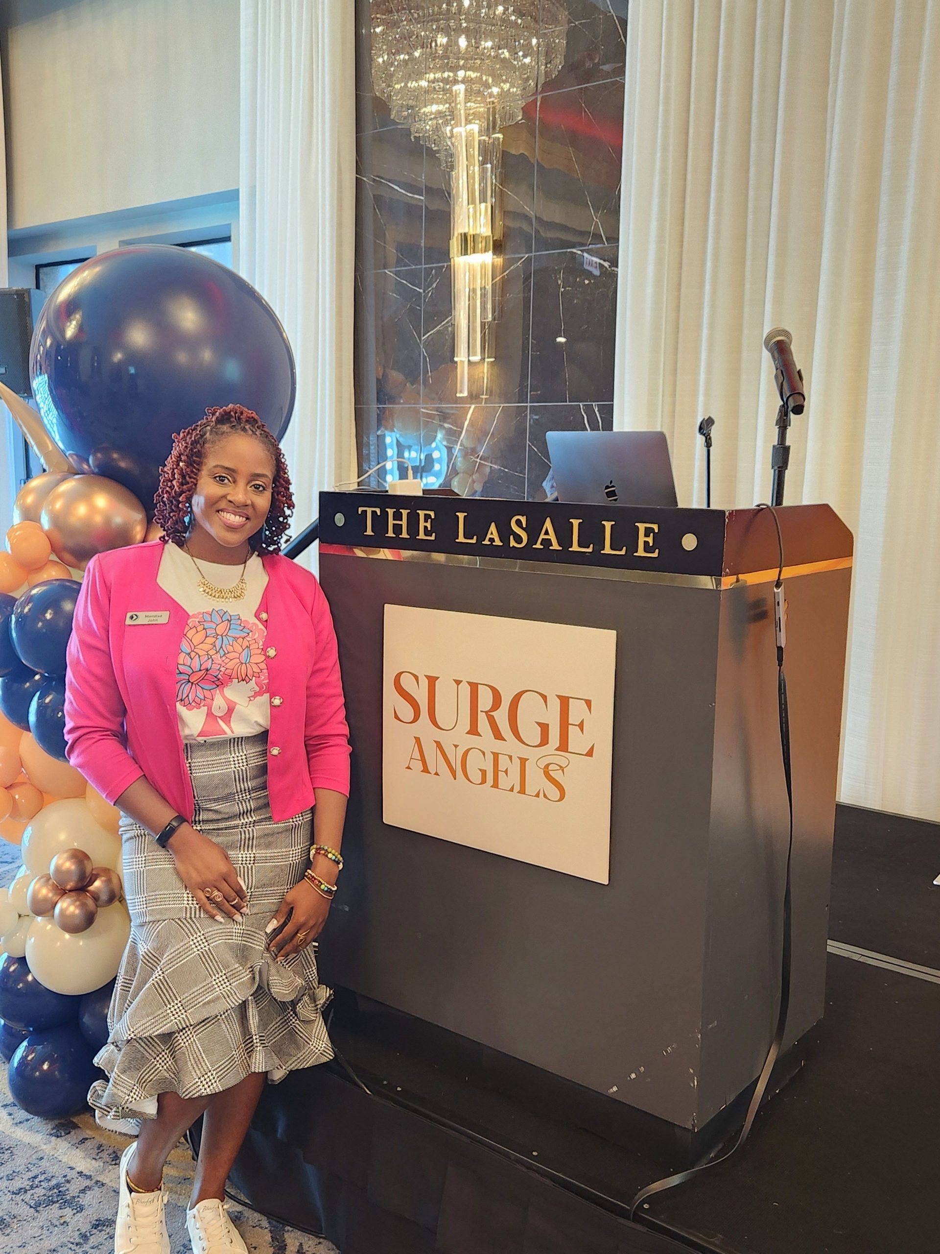 I also want to recognize Surge Institute—being selected for the Angels business incubator program was a turning point that helped turn my dream into a reality. My fellow Angels cohort members inspired me by building their own ventures, and the shared learning and support shaped me as a leader and entrepreneur. And beyond that, my Surge Academy Philly cohort has been a source of unwavering support, seeing me, believing in me, and helping me grow as a leader since then.