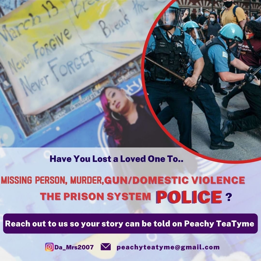 My name is Ms. Peachy and I’m a Cultural Commentator. My show is called Peachy Tea Tyme. The Tea Stands for CRIME. I talk about crime in our Black Community. I shine light on Missing Person Cases by having family members come virtually on my platform to spread awareness. I have family members that come on my show and tell their LOVED ONE STORY from all over the United States. If they was murdered thru Gun/ Domestic Violence and the Prison System, or even by The Police. We even cover cases on our platform for wrongfully imprisoned inmates. It’s all about bringing awareness to our Black Community and helping to seek Justice for those that never got Justice. . I stream on 5 different platforms. Roku Tv, Twitch, YouTube, and two Facebook pages.