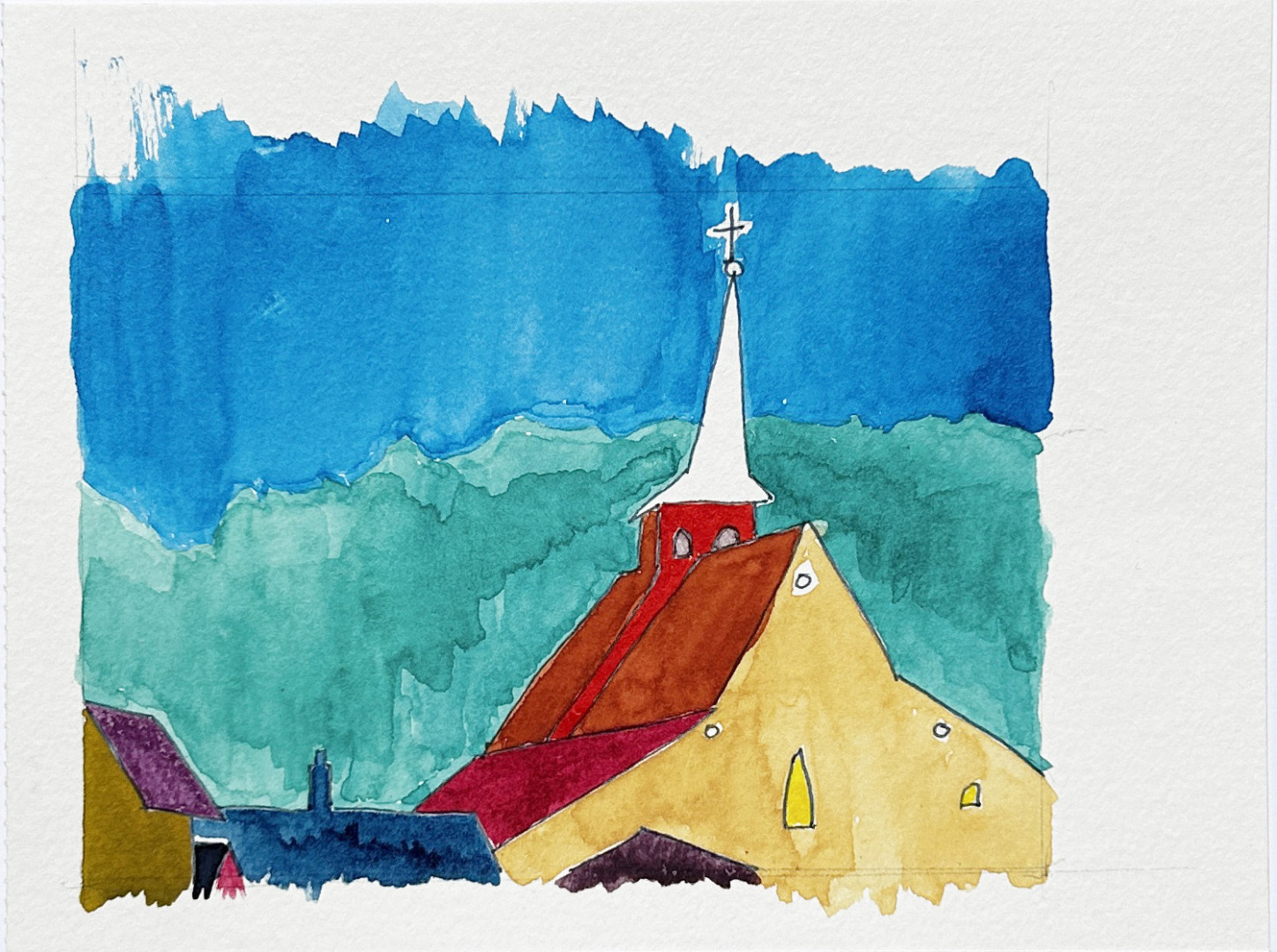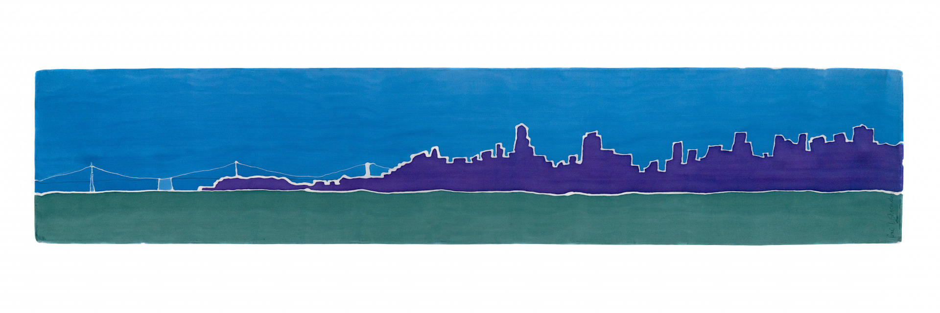 My art is powerful and dramatic, using bold colors and negative space to embody movement through urban and rural environments; around buildings, down streets, across towns and landscapes. These scenes bring me peace and joy. My work evokes airiness and openness while inviting the viewer inward into the mysteries of the locales. The impact of large, flat areas of color on silk invoke color field paintings and bespoke colors arise vividly between masterful lines. Gallerist Jérôme Bel wrote of my work: “delicate dyed silk surfaces come to life with a line so singular it is almost a signature”.