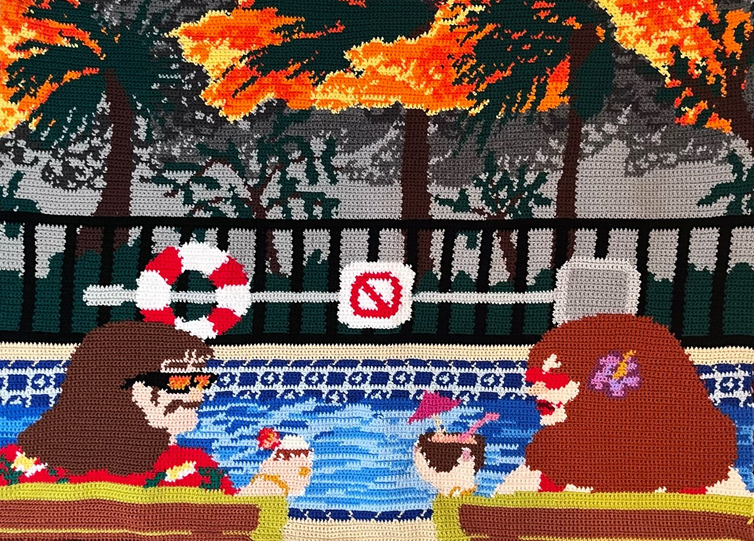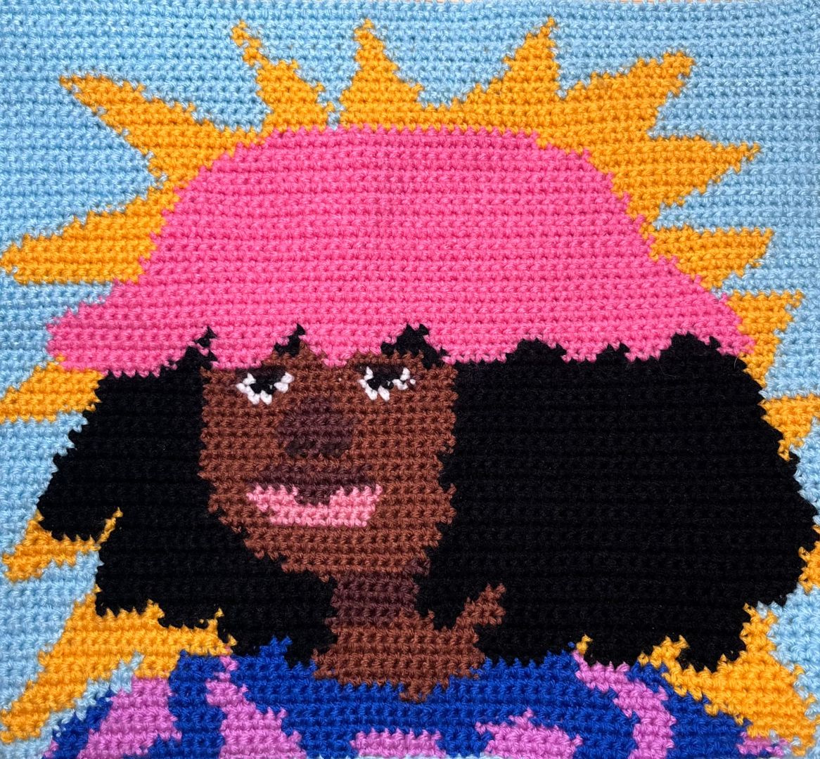 I learned to crochet during the pandemic and the idea of using this medium to create images and tell stories was very inspiring to me. I was in art school at the time of learning this new technique and i used to every assignment as a chance to perfect it. There was a learning curve at the beginning, i felt the things i wanted to make didn’t match the skillset i had, but with lots of hard work and countless hours of reading blogs written by crochet grandmas and watching youtube videos i was able to bring my ideas to life. I’ve learned that all the information you need exists in the world and that nothing is unachievable if you put in the time.