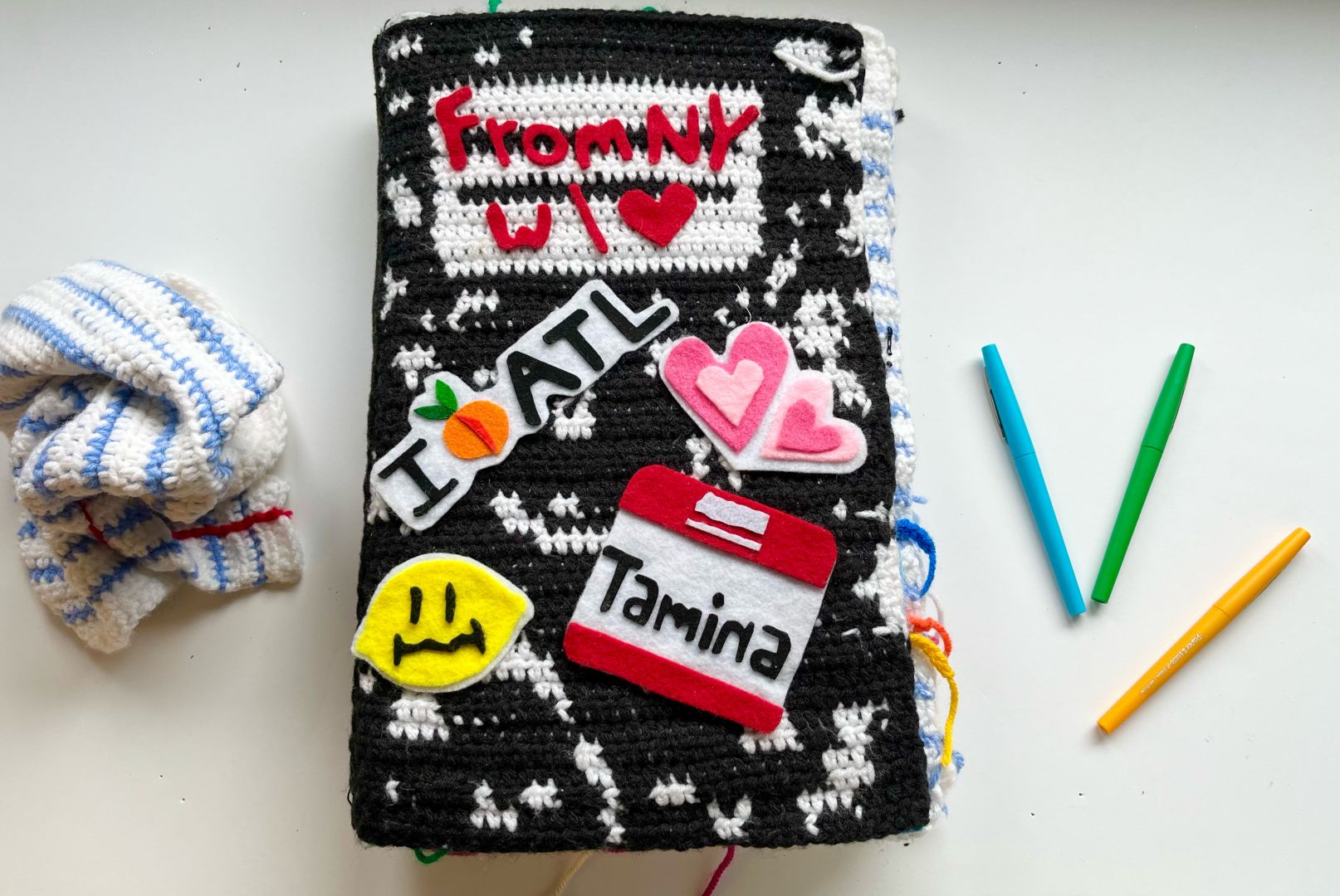 I learned to crochet during the pandemic and the idea of using this medium to create images and tell stories was very inspiring to me. I was in art school at the time of learning this new technique and i used to every assignment as a chance to perfect it. There was a learning curve at the beginning, i felt the things i wanted to make didn’t match the skillset i had, but with lots of hard work and countless hours of reading blogs written by crochet grandmas and watching youtube videos i was able to bring my ideas to life. I’ve learned that all the information you need exists in the world and that nothing is unachievable if you put in the time.