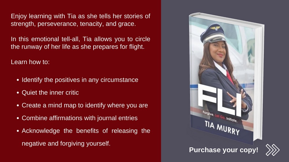 I am the Founder/CEO of FLI I am a known Motivational Speaker, Mindset Coach, 2x- Best Selling Author of the book FLI: Forgive. Let Go. Initiate. My mission with FLI to empower women to navigate the turbulence in their life by helping women to create a flight plan for a successful landing.